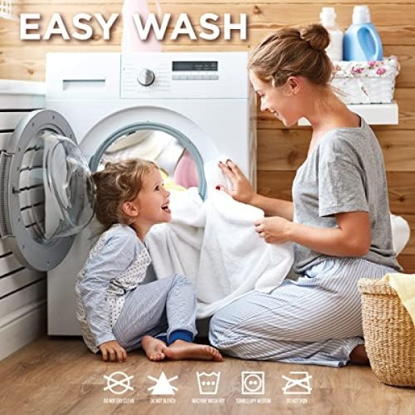 MACHINE WASHABLE AND DRYER SAFE – MACHINE WASH COLD, TUMBLE DRY ON LOW HEAT, DO NOT BLEACH, DO NOT DRY CLEAN, DO NOT IRON, DO NOT USE FABRIC SOFTENER