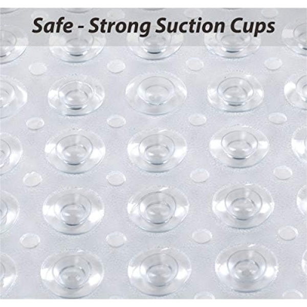 Skid-resistant,149 strong suction cups keep mat firmly in place.