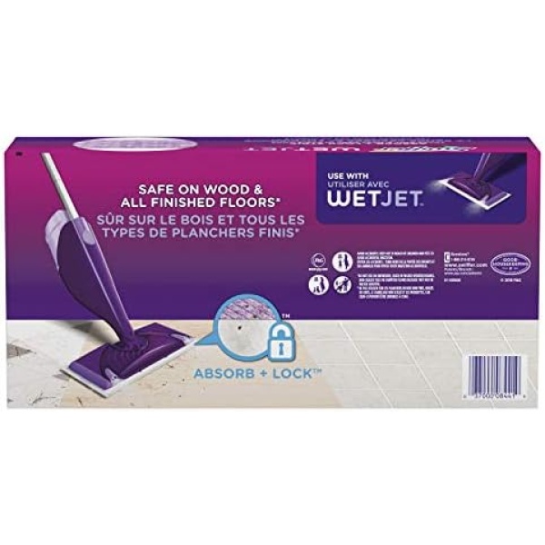 Swiffer WetJet Hardwood Floor Cleaner, Spray Mopping Pad Refills have a new ABSORB + LOCK STRIP that helps trap dirt & grime deep in the cleaning pad so it doesn’t get pushed around. When you’re done, just remove the pad and throw it, and all that dirt, away forever.